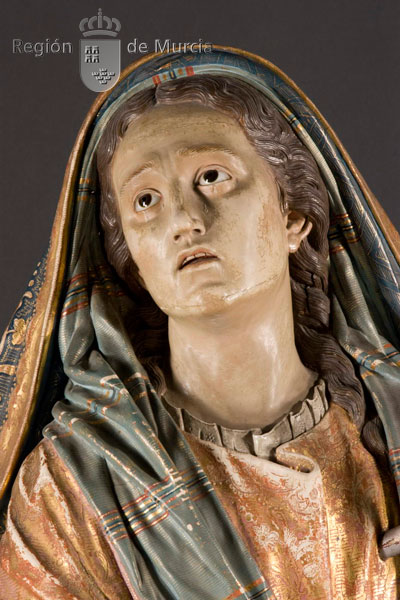 - Técnica: Madera tallada y policromada con estofas