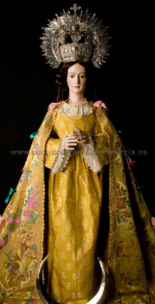 Considero que estamos ante una pieza de indudable interés ya que marca una serie de parámetros plásticos y estéticos enraizados en un barroco ya atemperado y tamizado por el gusto del primer tercio del siglo XIX, a quien debe esa impronta de artificiosa belleza. Los rasgos estereotipados y un tratamiento somero de algunas partes (orejas, dedos, cejas,) se combinan certeramente con la suntuosidad de los adminículos y ropajes recreando, sin lugar a dudas, una de las advocaciones de la Virgen más hermosas de Murcia.