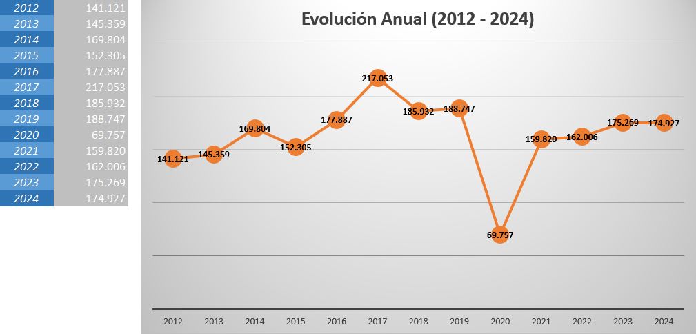 Pincha en los gráficos para consultar las estadísticas de los años 2011 al 2024.